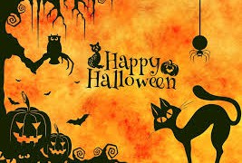 Det är en Halloweenkväll och många barn är utklädda till olika monster. Det småregnar ute och några har paraply med sig. Jag är nu framme ...