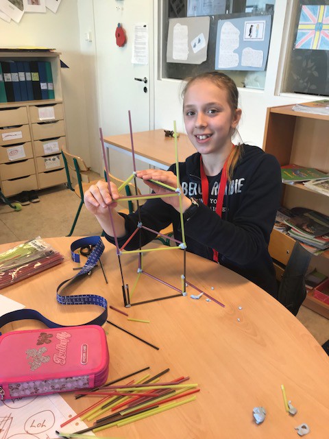 En grupp byggde torn med sugrör. Vi använde saxar och häftmassa för att göra tornet mer stabilt. Det fanns ett torn som blev 1 meter och 29 centimeter, den var väldigt stabil på botten men inte stabil på toppen. Den blev så lång för att dom gjorde en lång stolpe med sugrören som var väldigt smal. Det var 2 andra torn som försökte härma det långa tornet genom att bygga högt med sugrören. När vi skulle ställa ut tornen så var det långa tornet för långt så den nuddade taket.